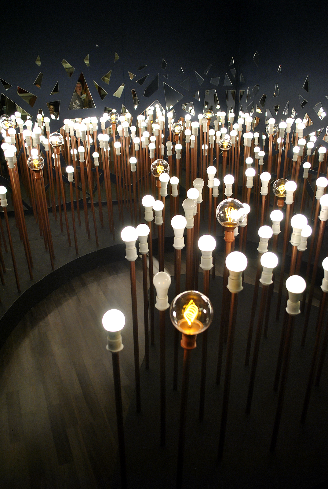 Installaatiossa käytettiin erikokoisia Ledare-polttimoita, sekä Nittio-polttimoita.